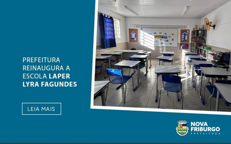 A Prefeitura de Nova Friburgo reinaugurou na tarde desta quarta-feira, 19, a Escola Municipal Laper Lyra Fagundes, localizada em Lumiar. O prefeito Johnny Maycon, juntamente com a primeira-dama, Lorrayne Ribeiro, a secretária de Educação, Caroline Klein, secretários municipais, servidores, vereadores, comunidades escolar e local celebraram a entrega da unidade escolar, reafirmando o compromisso do atual governo municipal com a melhoria contínua de instituições escolares da rede municipal de Educação.