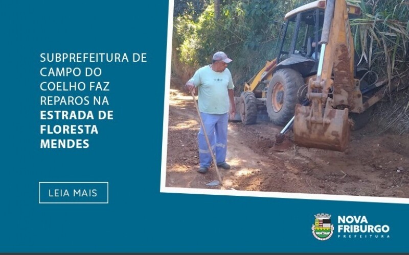 A Prefeitura de Nova Friburgo, através da Subprefeitura de Campo do Coelho, está fazendo reparos em um trecho da estrada de acesso à localidade de Floresta Mendes. O subprefeito Amarílio Salarini observa que nessa via há muitas residências e os moradores não estavam conseguindo transitar com seus veículos.