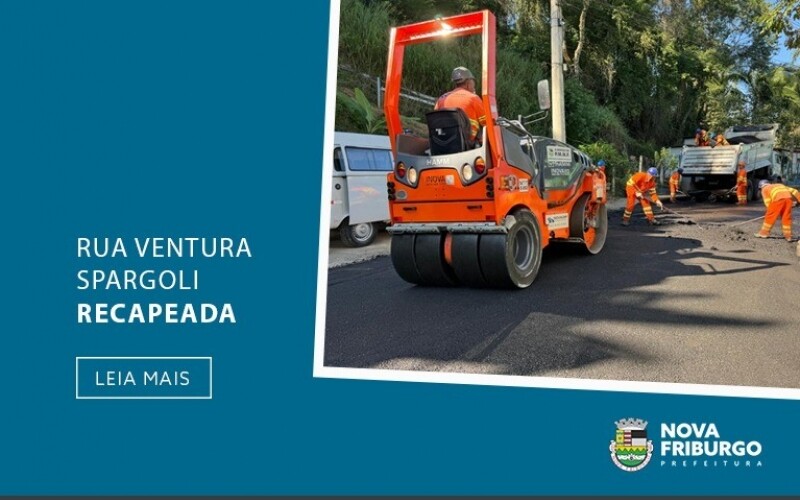 A Rua Ventura Spargoli, no Prado, distrito de Conselheiro Paulino, está recebendo asfaltamento feito pela Prefeitura de Nova Friburgo, por meio da Secretaria de Obras e Subprefeitura de Conselheiro Paulino. Na semana passada foi feito o primeiro trecho, enquanto o segundo trecho está sendo concluído nesta terça-feira, 4 de junho.