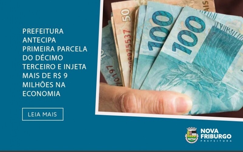 De maneira antecipada, a primeira parcela do décimo terceiro foi creditada nas contas dos 6.933 servidores públicos municipais. Assim a Prefeitura de Nova Friburgo antecipou o pagamento para esta quarta-feira, dia 15, véspera do aniversário de 206 anos do município. Habitualmente, essa parcela é creditada na conta dos funcionários no mês de junho.