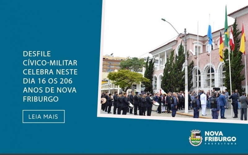 Na manhã da próxima quinta-feira, dia 16 de maio, será feriado em Nova Friburgo, que comemora seus 206 anos. E como tradicionalmente acontece, a data será celebrada com o desfile cívico-militar. As solenidades estão programadas pela prefeitura, por meio da Secretaria de Cultura, a partir das 7h30, com previsão de que se estendam por toda a manhã.