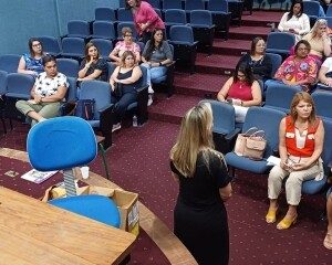 A professora doutora Tatiana utilizou um referencial teórico e prático sobre o transtorno do desenvolvimento da linguagem (TDL), ressaltando a importância do aprendizado deste conhecimento, a fim de que sinais dos transtornos sejam percebidos e encaminhados ao fonoaudiólogo, profissional que estuda e lida com estas questões. Ressaltou ainda a importância da parceria entre profissionais da educação com a fonoaudiologia, em que as crianças e professores são beneficiados. "Parabenizo e valorizo o trabalho de formação de profissionais da educação, elemento fundamental para o crescimento profissional de todos”, enfatizou Tatiana.