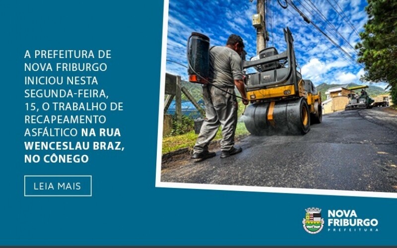 A Prefeitura de Nova Friburgo iniciou nesta segunda-feira, 15, o trabalho de recapeamento asfáltico na Rua Wenceslau Braz, no Cônego.