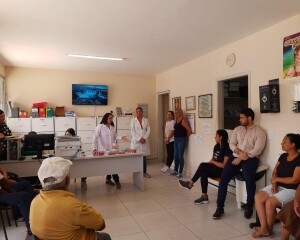 Durante as visitas, foi realizado o exame clínico oral, juntamente com avaliação de lesões e conscientização da prevenção em câncer oral, orientação sobre higiene oral e entrega de kits de saúde bucal.