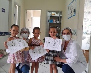 Outra ação aconteceu em Amparo, em parceria com a equipe da ESF Amparo. Sob orientação da dentista, Dra. Erika Gripp, juntamente com a auxiliar de saúde bucal, Regiana Ferraz da Silva, durante todo o mês de março, 118 crianças de 4 a 10 anos (pré-escolar a 3° ano do ensino fundamental) da Escola Municipal Hermenegildo Gripp receberam kits de higiene bucal, orientação sobre higiene oral, escovação supervisionada e aplicação tópica de flúor.