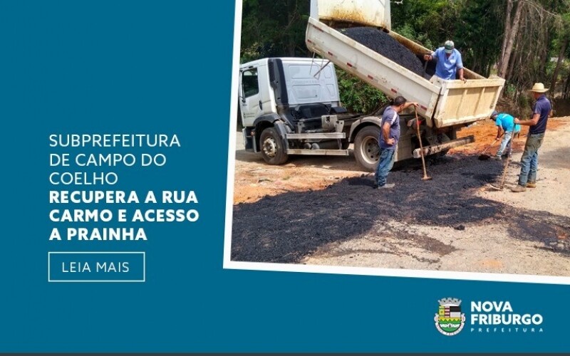 O distrito de Campo do Coelho tem duas vias cuja recuperação era aguardada pelos moradores da região: a Rua Carmo e a estrada de acesso à localidade de Prainha. O subprefeito Amarílio Salarini levou esse pleito ao prefeito Johnny Maycon, que autorizou a execução dos serviços.