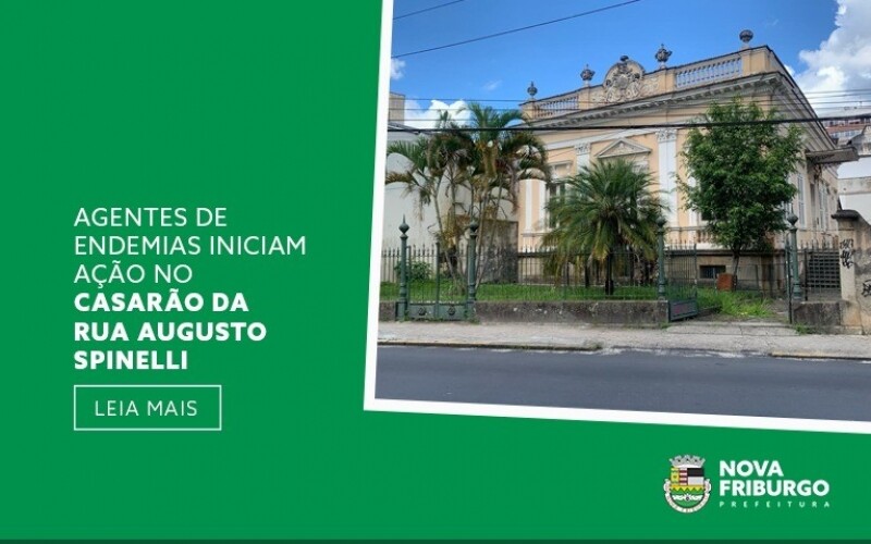 A Prefeitura de Nova Friburgo, através dos agentes de Combate às Endemias da Secretaria Municipal de Saúde, iniciou, na manhã desta segunda-feira, 26, no Casarão Histórico da rua Augusto Spinelli, mais uma ação de enfrentamento à dengue e combate á proliferação do mosquito Aedes aegypti, responsável por doenças como dengue, zika e chikungunha. Os agentes realizaram a vistoria do espaço, aplicaram larvicidas e inseticidas e observaram os pontos que devem continuar a inspeção cuidadosa para prevenir a doença.